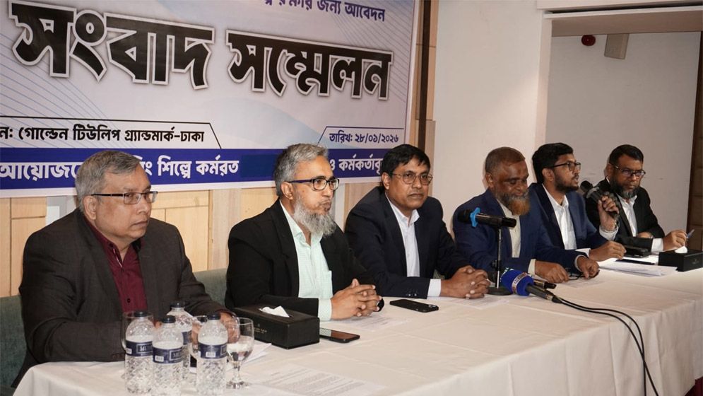 বুধবার দুপুরে রাজধানীর বনানীর একটি হোটেলে স্পিনিং মিলে কর্মরত কর্মকর্তা-কর্মচারিরা সংবাদ সম্মেলনের আয়োজন করে।
