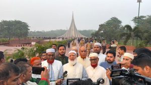 মাননীয় বিরোধীদলীয় নেতা মহান আল্লাহর দরবারে স্বাধীনতা যুদ্ধে নিহত সকল শহীদের আত্মার মাগফিরাত কামনা করেন এবং দেশের শান্তি, সমৃদ্ধি ও কল্যাণ কামনা করে দো’য়া করেন।