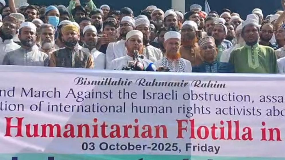 শুক্রবার (৩ অক্টোবর) জুমার নামাজের পর গাজায় ত্রাণবাহী ফ্লোটিলায় আক্রমণ, হামলা ও বিশ্বের মানবাধিকারকর্মীদের গ্রেফতারের প্রতিবাদে বায়তুল মোকাররম জাতীয় মসজিদের উত্তর গেটে জামায়াতে ইসলামী ঢাকা মহানগর উত্তর ও দক্ষিণ আয়োজিত বিক্ষোভ মিছিল পূর্ব সংক্ষিপ্ত সমাবেশে প্রধান অতিথির বক্তব্যে তিনি এসব কথা বলেন।