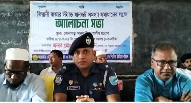 আশুলিয়ার জিরানী বাজার স্ট্যান্ডে যানজট, মাদক ও সন্ত্রাসী কার্যক্রম নিরসনের লক্ষে সাংবাদিক, পুলিশ, রাজনৈতিক নেতৃবৃন্দ, শিক্ষক, ব্যবসায়ী, জনপ্রতিনিধি, অটোচালক সহ সুশীল সমাজের মানুষের সাথে এক আলোচনা সভা অনুষ্ঠিত হয়েছে। মঙ্গলবার (১৪ অক্টোবর) বেলা ১১টার দিকে আশুলিয়ার কোনাপাড়া দারুল উলুম আলিম মাদ্রাসার হলরুমে এই সভা অনুষ্ঠিত হয়।
