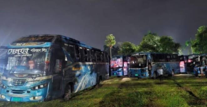 জাবির শিক্ষার্থীকে মারধরের অভিযোগে ৭টি সেলফি বাস আটকে রেখেছে শিক্ষার্থীরা