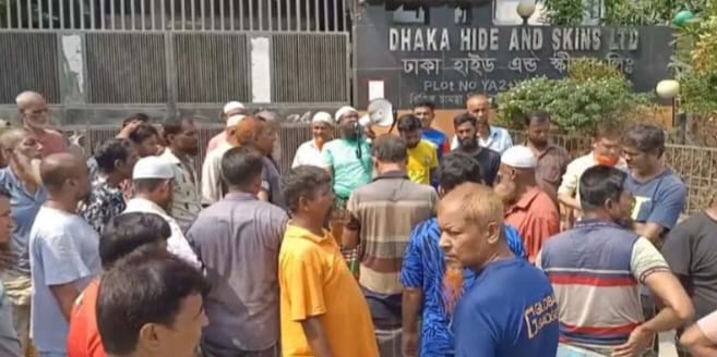 সাভারে চামড়া শিল্পনগরীতে শ্রমিকদের বিক্ষোভ