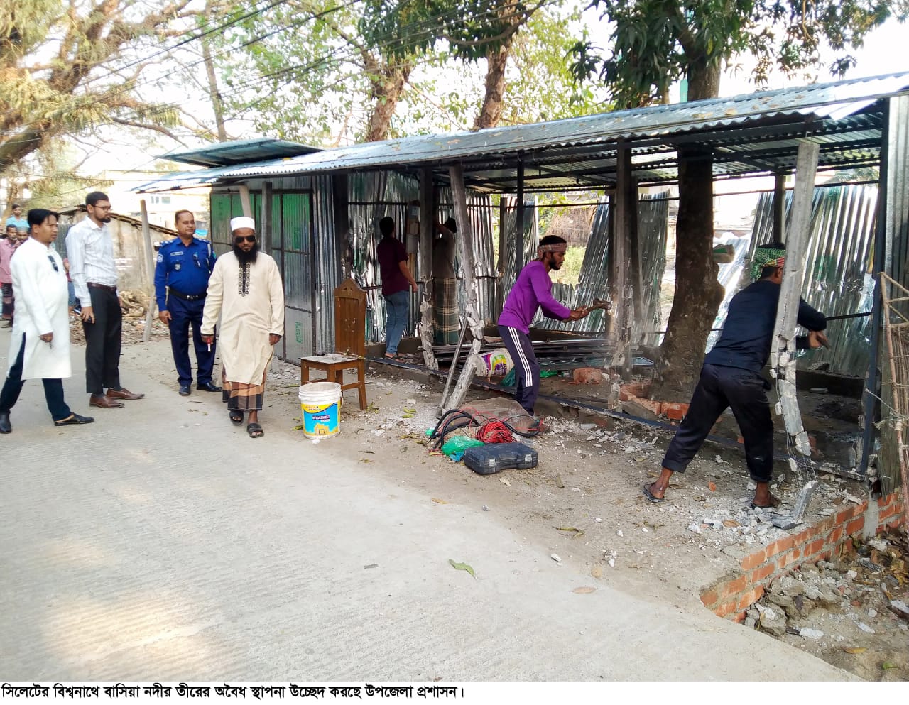 আদালত অবমাননা ও স্থানীয় এমপির নির্দেশনা অমান্য করে সিলেটের বিশ্বনাথ পৌর শহরের নতুন বাজার এলাকার টিএনটি রোডে ‘বাসিয়া নদী’র তীরে