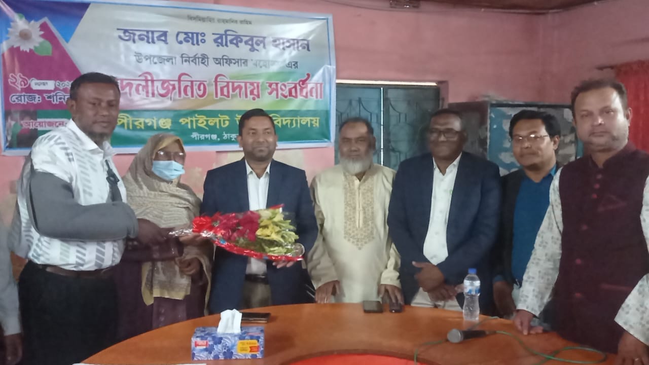 ঠাকুরগাঁওয়ে পীরগঞ্জে উপজেলা নির্বাহী অফিসার রকিবুল হাসানকে বদলি জনিত বিদায় সংবর্ধনা দেওয়া হয়েছে। শনিবার বিকালে পীরগঞ্জ পাইলট উচ্চ বিদ্যালয়ের পক্ষ