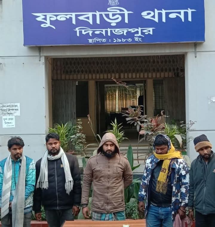 ফুলবাড়ীতে ভুয়া ডিবি পরিচয়দানকারী ৫ জন আটক।
