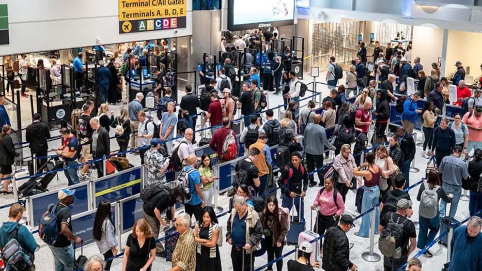 হিউস্টনের জর্জ বুশ ইন্টারকন্টিনেন্টাল বিমানবন্দরে একটি চেক পয়েন্টে দীর্ঘ লাইনে অপেক্ষা করছেন যাত্রীরা। ছবি: সংগৃহীত যুক্তরাষ্ট্রে দীর্ঘ শাটডাউন বা সরকারি