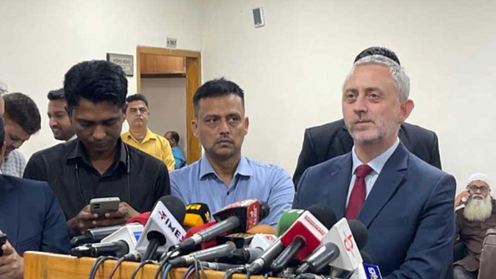 ঢাকায় ইউরোপীয় ইউনিয়নের রাষ্ট্রদূত মাইকেল মিলার। ছবি: সংগৃহীত ত্রয়োদশ জাতীয় সংসদ নির্বাচন ও গণভোটের সার্বিক প্রস্তুতিতে ‘সন্তোষ প্রকাশ করেছেন’ ঢাকায়