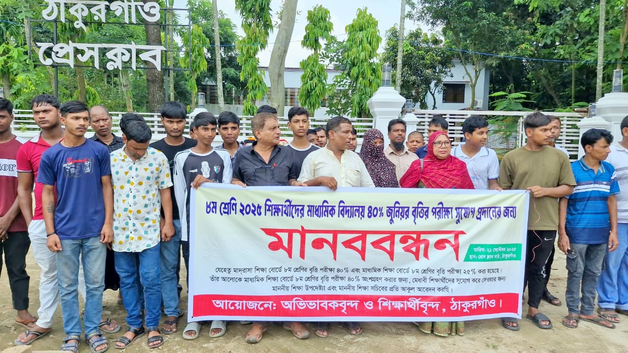 মাদ্রাসা ও মাধ্যমিকে বৃত্তির হার সমপরিমান করার দাবীতে ঠাকুরগাঁওয়ে মানববন্ধন