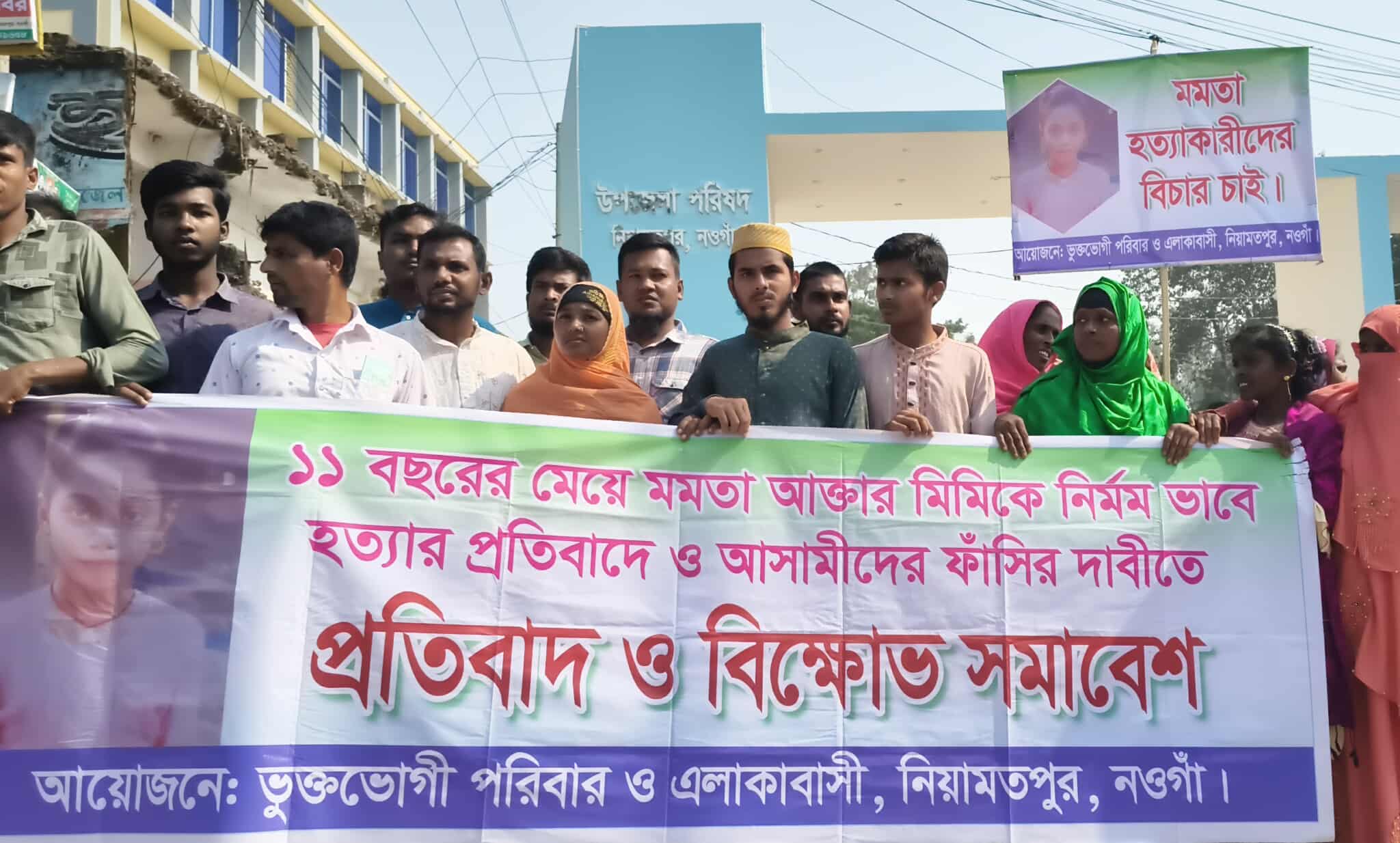 নওগাঁর নিয়ামতপুর উপজেলার তল্লা সরকারি প্রাথমিক বিদ্যালয়ের পঞ্চম শ্রেণির শিক্ষার্থী মমতা আক্তার মিমি (১১) কে নির্মমভাবে হত্যার প্রতিবাদে, হত্যাকারীদের ফাঁসির